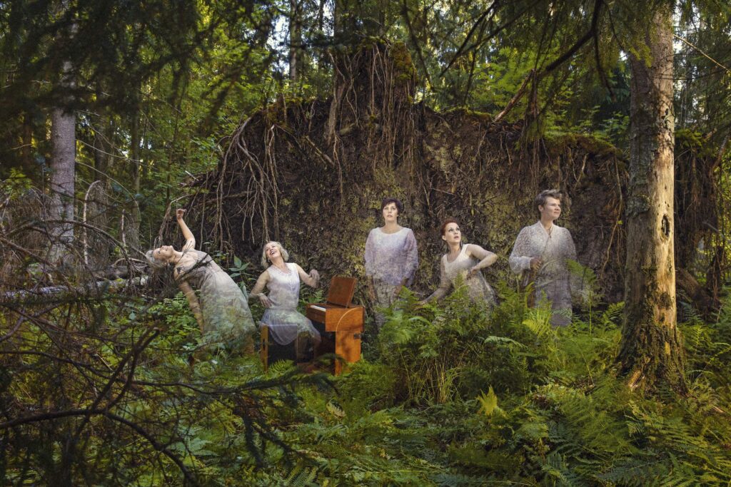 Suon sylissä (I myrens famn) – konserten tar oss med på en resa genom underbara, roliga och märkliga naturupplevelser samt vetenskapliga observationer. I resväskan hos gruppen Juurakko och marinbiologen-ljuddesignern Myyri Sysivesi finns mångstämmig bluesmusik, klangfärger från en kantele som river djupt i flodmynningen, berättande och diverse bruksföremål som upphöjts till instrument. I konserten får vi höra folkberättelsernas visdom i en aktuell, upplevelserik och tankeväckande form. Juurakko, som river fram rotmusik med en frisk skiffle-attityd, har valt låtar som behandlar skyddet av vattendrag, klimatförändringar och människans verksamhet i olika landskap – som en oskiljaktig del av naturen. Sångernas berättelser tar oss från Finska vikens skärgårdar via forsarna i mellersta Finland till Österbottens slätter och ända till Lappland vid fjällens fot. Den råa Juurakko-bluesen för lyssnarna djupt in i myren och får dem att dansa lätt på fartygsdäck. Juurakko: Laura Kaartinen: sång, reseorgel, slaginstrument Eija Kankaanranta: kantele Kaisa Saarikorpi: sång, sigarlådinstrument, gitarr, slaginstrument, banjo Minsku Tammela: sång, stråkharpa, munharpa, slaginstrument Anna Wiksten: sång, plankku, slaginstrument Den vetenskapliga vinklingen i konserten skapas av biologen, forskningsdykaren och ljudteknikern Myyri Sysivesi. • tid: kl. 19 (dörrarna 18.30) • biljetter: 20 / 15 € (+beställningsavgift från 1,60 €) www.lippu.fi • plats: Fabrikssalen • längd: ca. 2h (inklusive paus) • K-18 (servering i salen Restaurang Fabriken) • onumrerade sittplatser • arrangör: Borgå stads kulturtjänster bild: Janne Mikkilä www.juurakkoband.fi