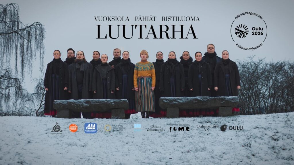 The Folk Dance Group of the Year 2026 Pähiät will premiere a modern folkdance theatre work Luutarha (The Bone Garden) by dance artist Elena Vuoksiola and composer Kaisa Ristiluoma. Love and death are intertwined in the work, where the Kalmanväki (the ghostly host) convey messages from this world to the afterlife. What would you be willing to do to share one more dance with your loved one? Luutarha (The Bone Garden) represents a modern, performing Finnish folkdance theatre, inspired by the landscapes of Oulu and northern mythology. The work will feature over twenty luminous singing dancers from the folkdance ensemble Pähiät and a live band of professional musicians.