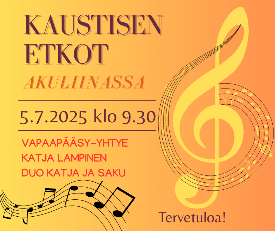 Kaustisen festivaaleille lähtevien jämsäläisten esiintyjäryhmien "kenraaliharjoitus". Soittamassa Vapaapääsy-yhtye, mestaripelimanni Katja Lampinen ja Duo Katja ja Saku Saku Lahti&KOMIA-yhtyeestä. Tervetuloa kuulolle ja nauttimaan lauantaiaamun torielämän vilinästä kera menevän musiikin ja Akuliinan kahviherkkujen.
