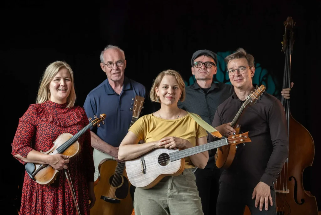 Keskustan Roasbergin kellarissa kaksi esitystä americanaa ja folkia! Sisäänpääsy 15€ ovelta tai ennakkoon Fientasta https://fienta.com/fi/paula-wolski-ensemble-levynjulkaisukonsertti-rautakoura Paula Wolski Ensemble Paula Wolski on laulaja-lauluntekijä, jonka kappaleissa suomalainen kansanlaulu punoutuu saumattomasti americanaan. Uuden, suomalaisen folk-skenen rautaisista ammattilaisista koostuvan Paula Wolski Ensemble -yhtyeen soljuva soitto ja lempeät sävyt sekä toisaalta energiset irtiotot luovat luontevan pohjan Paulan kuulaan ja melismaattisen laulun alle. Yhtyeen 24.4. ilmestyvä Koti täällä -albumi kertoo kotiinpaluusta mutta myös laajemmin siitä, mitä kaikkea voi koti ihmiselle merkitä – paikkaa, toista ihmistä, yhteisöä tai vaikkapa aikoja, jotka eivät enää palaa. Paula Wolski – laulu, ukulele Kalle Jämsen – kitara Nelli Ikola-Heiska – viulu, laulu Jarmo Romppanen – mandoliini Jani Snellman – kontrabasso Rautakoura Rautakoura on vuonna 2004 perustettu helsinkiläinen yhtye, joka esittää modernia folk- ja bluegrass-vaikutteista musiikkia suomeksi. RK keräsi alunperin soittokokemuksensa soittamalla kesäisin Helsingin kaduilla, ja sittemmin yhtye on keikkaillut ympäri Suomea festivaaleilla, ravintoloissa ja olohuoneissa. Yhtyeen kymmenes omakustanteinen albumi "Polku" julkaistiin huhtikuussa 2025.